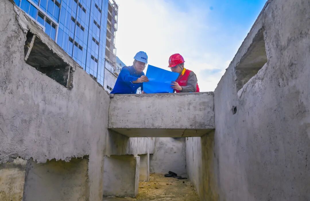▲国网杭州市余杭区供电公司员工到思看科技有限公司,以专人“1对1”全程盯梢,多地块临电“打包”式等服务,完成拿地开工“同步走”。张德峰摄